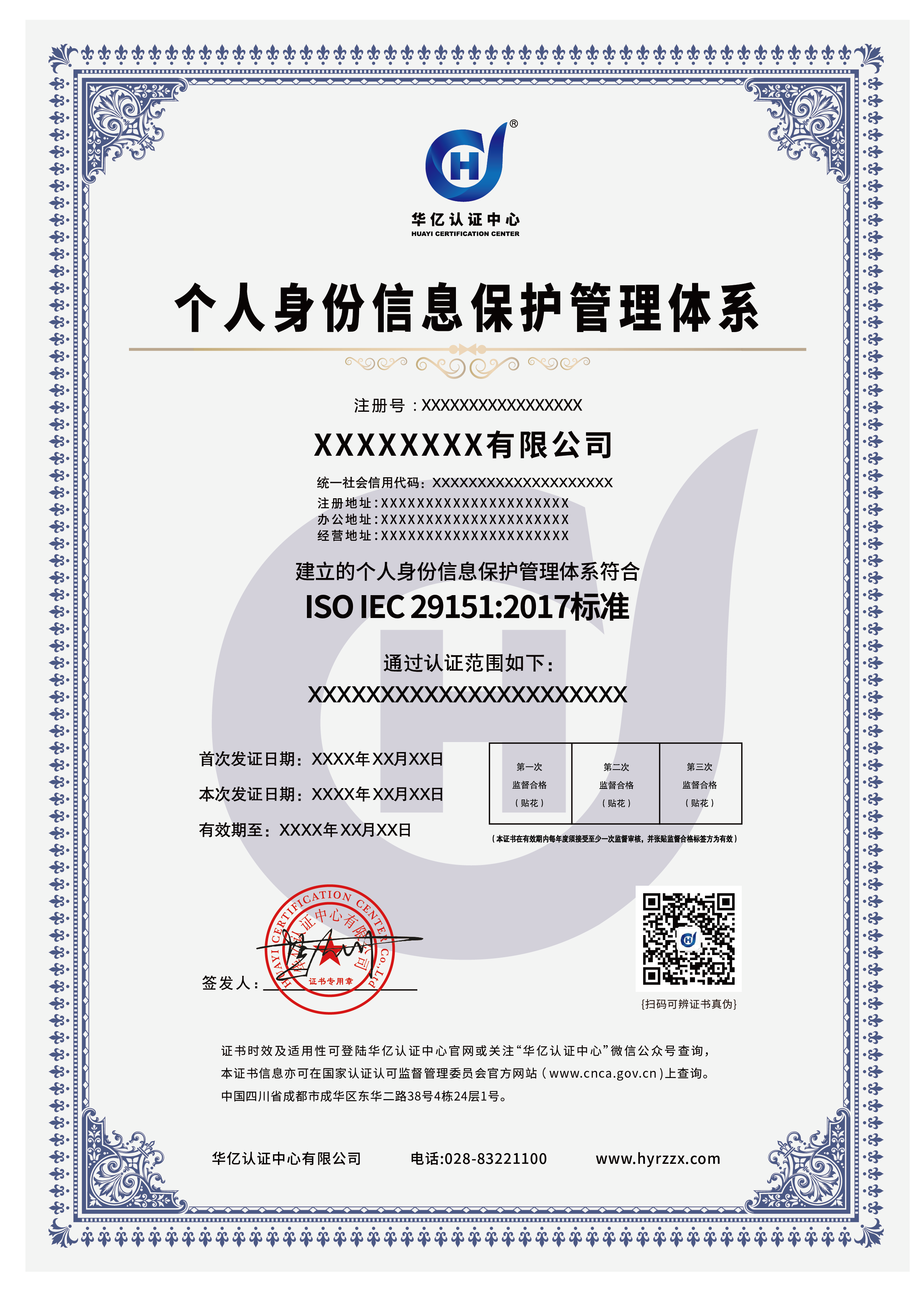隐私信息管理体系认证证书